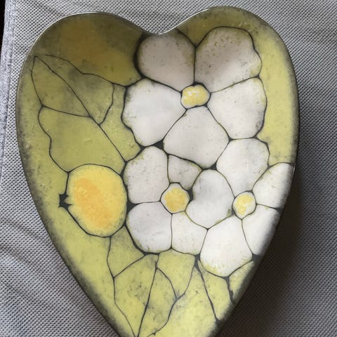 Anu Pentikin signeerauksella varustettu, Pentik Studion sydämenmuotoinen syvä kulho. Virheetön.
