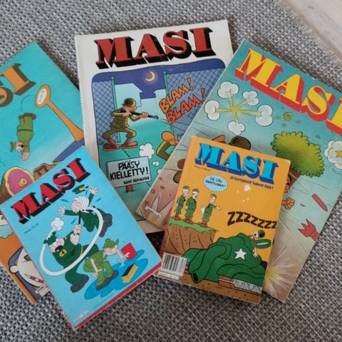 Kaikkia luettu joten käytönjälkiä näkyy. Nrossa 7 enemmän taittumaa, Nrossa 8 tahraa sivujen ulkoreunoilla (ei estä lukemista), muut ihan hyväkuntoisia.