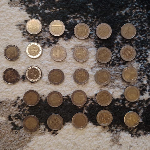Oikein siistejä 2€ kolikoita 20kpl hinta yhteensä 60€ lähetyskulut lisätään 6,90€ tai nouto ylöjärveltä