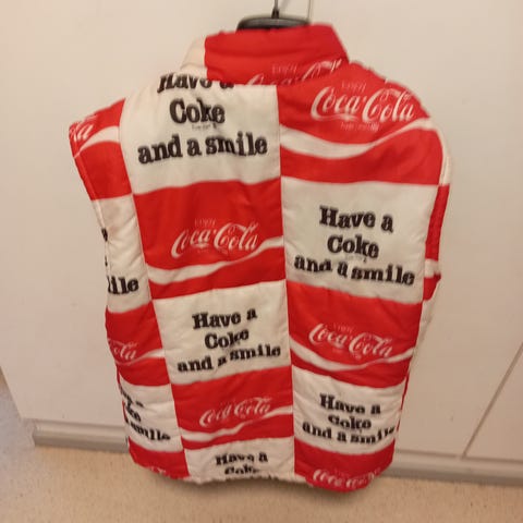 Coca-Cola neuleliivi, väri punainen,koko L. Materiaali V-aukkoinen malli ilman hihoja.