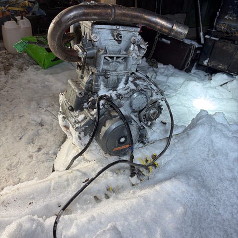 Pyörän mukana tullut moottori ylimääräisenä myyntiin. Entisen omistajan mukaan käyttökunnossa purettu pyörästä.