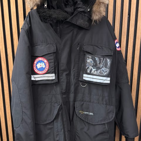 Canada Goosen Maitland mallin talvitakki. Takki on hyvässä kunnossa, ainut moite on CG:lle tyypillinen taskussa napin kohdalla näkyvä "haalistuma", näkyy kuvassa.