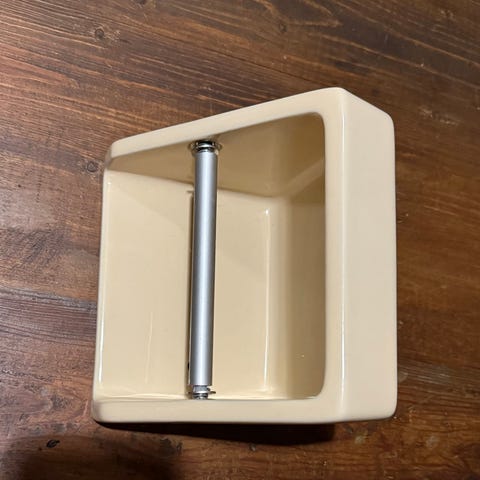 Arabia Wärtsilä vaaleankeltainen (kerma) wc-naulakko, ilmeisimmin 70-luvulta,. Kunto virheetön. (Löytyy myös vessapaperiteline, erillinen ilmoitus)