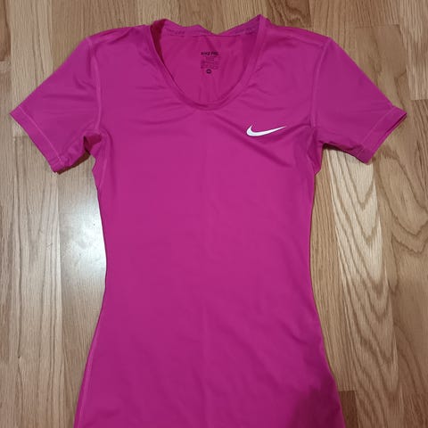 Niken urheilupaita, koko L. Mukavan tuntuinen päällä. Valkoisessa osassa edessä joku hailakka jälki, en ole kokeillut tahranpoistoa, kun nyt vasta kuvaa varten levitellessä huomasin. Lähetys toridiilinä.