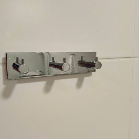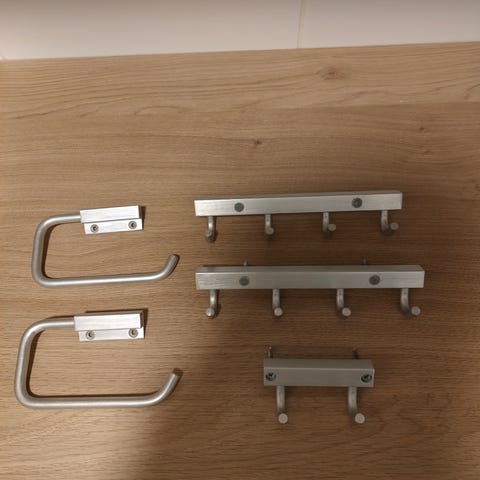 Nelikoukkuiset, valkoiset metalliset Abloy pyyhenaulakot esim. WC tai keittiöön.