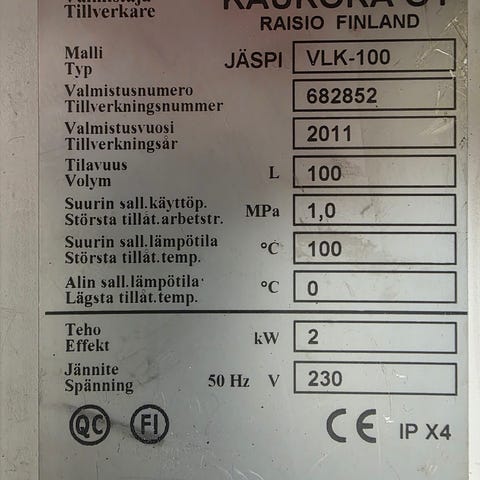 Jäspi VLM-300 S lämminvesivaraaja. 290 l. Kaikki toimii.