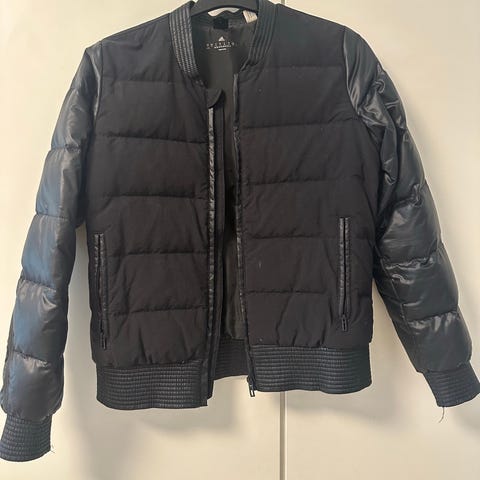 Yhtenä talvikautena vähällä käytöllä ollut, ei näkyvää likaa - untuva takin pesu jää ostajalle.