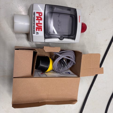 Rasvanerottimen hälytin missä padotus hälytys ja rasvatila täynnä hälytys.