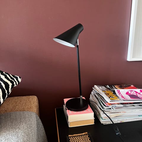 Metallinen pöytävalaisin, jossa suora ja kulmikas muotoilu. Varustettu johdolla ja lampulla. Soveltuu pöytävalaisimeksi esimerkiksi työ- tai lukuvaloksi.