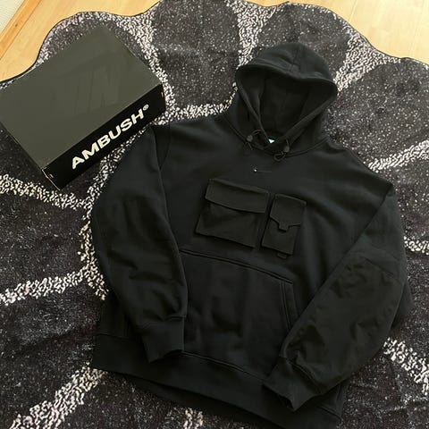 Musta Nike tech huppari jossa näkyy hihoissa käytön jälkiä koko lasten xl