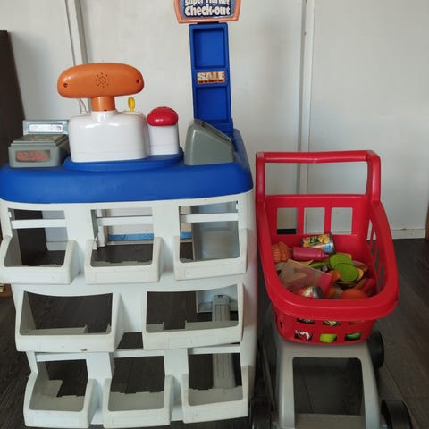 Myydään Lidlin puinen kauppa. Hihna liikutettavissa "kahvalla" pyörittäen.
