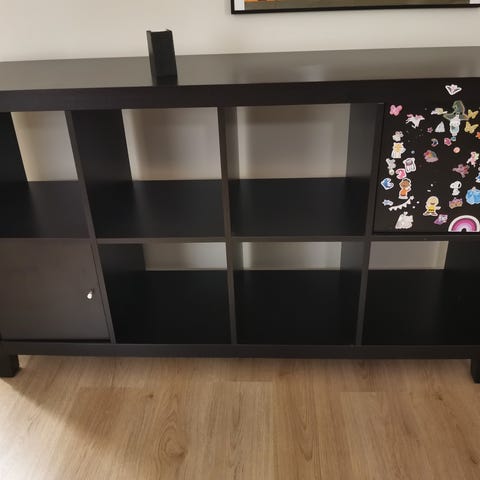 Ikea Kallax-hylly. Jotain pieniä käytönjälkiä. Korit saa halutessaan mukaan.