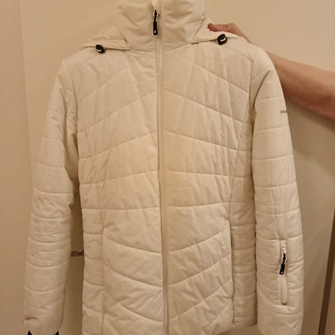 Myyntiin ihanan muhkea toppatakki.Erittäin hyvä huppu ja taskuja on useita. Takin helmassa on pienet korjatut paikat(näkyy kuvassa).Kuva hieman vääristää, väri on vihreämpi.Pesty ja kuivurissa kuivattu.