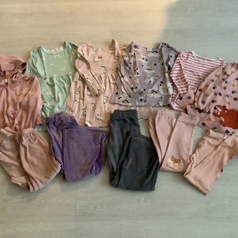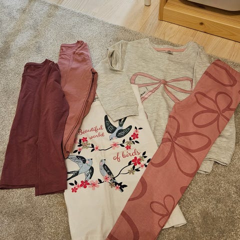 Vaatepaketti, koot 110-116. Hyvä käytetty kunto. Lindexin yksisarvispitkähihaisessa koko 122 mutta vastaa ennemmin 116, Metsolan kettupaita 110 mutta reilu koko, käytetty 116 kanssa vielä. Lindex Liila collegepaita ja sateenkaariteepaita kokoa 116 ja loput kaksoiskoko 110/116.