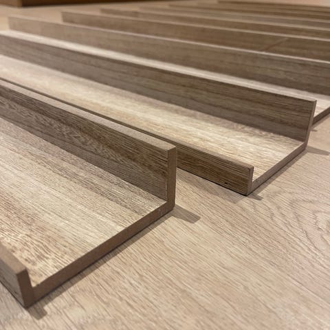 Seinähylly vaaleasta puusta. Hyllyssä on useita osioita, jotka tarjoavat säilytystilaa erilaisille esineille. Sopii seinälle kiinnitettäväksi.