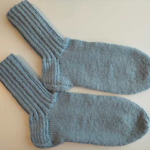 Kotikulta sukkalangasta käsinkudottu (jämälanka) villasukat, 75 %villa ja 25 polyamidia, konepestävä. Vahvistettu kantapää, koko 41 - 42. Postitus onnistuu. MMM.