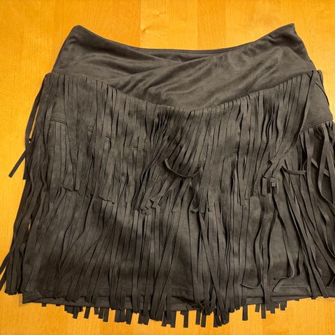 Helga Haaga Helia, koko S. Haalari on sininen ja siinä on useita valkoisia painatuksia.