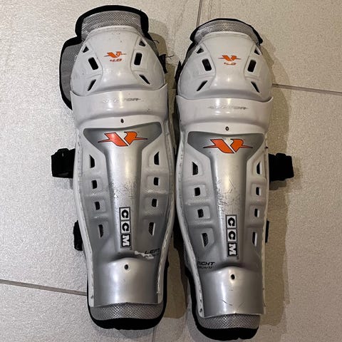 CCM AS-V jääkiekkosäärisuojat lapselle. Hyvässä kunnossa, ei kauaa ehtinyt olla käytössä. Kokomerkintä näkyy kuvassa.