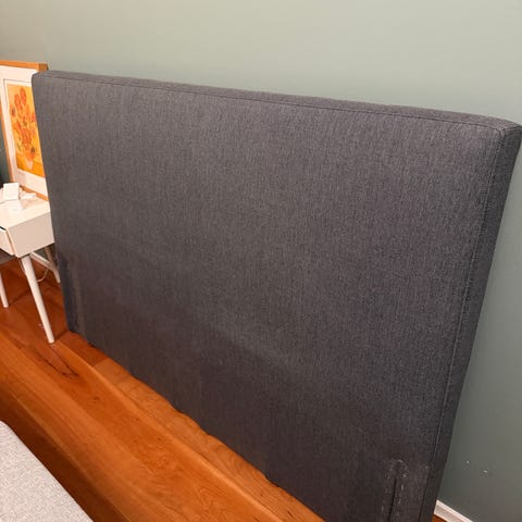 Tummanharmaa sängynpääty, joka sopii 160 cm leveään sänkyyn. Mukana kiinnitystarvikkeet, jalat 20cm ja ohjeet.