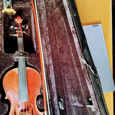 Myydään hyväkuntoinen ja ehjä 1/2 viulu, jonka 2 kieltä pitää uusia. (Yhden kielen uusiminen maksaa n.10e soitinliikkeessä.) Mukana tulee ehjä ja hyväkuntoinen kuljetuslaukku sekä jousi, jossa näkyy käytön jäljet. Myydään muuton tieltä pois halvalla.