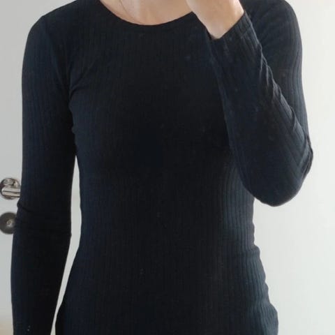 Liituraitamekko ohuesta villasta. Ei kutita. Pieni langanveto kuvassa , ei käytännössä juurikaan kiinnitä huomiota. Kunto kohtalainen kuitenkin tästä syystä liitteessä mitat