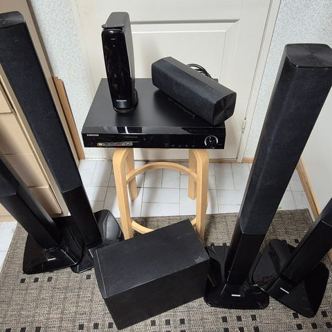 Siisti ja toimiva Samsung soitin 2.1 kaiuttimilla. Ihan ok kuuluvuus vaikka ei mitään hifiä. Nouto