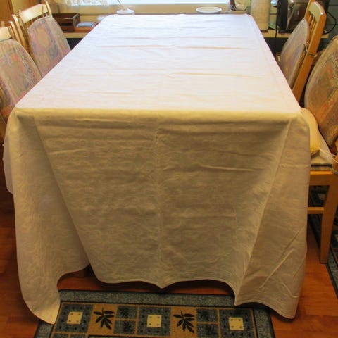 valkoinen pöytäliina (pit. 218, lev. 138.5 cm)