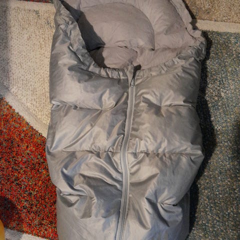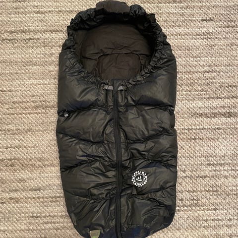 Erittäin hyväkuntoinen ja muhkea untuvapussi vaunuihin tai rattaisiin. Rattaiden valjaat saa takaata läpi. Pestävä.