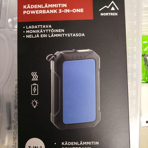 Nortrek Powerbank kädenlämmitin on kätevä 3 in 1-laite, joka toimii niin kädenlämmittimenä, varavirtalähteenä ja hätätaskulamppuna. Kaksipuoleinen lämmitys ja nopea lämpeneminen. Lataa mobiililaitteet helposti USB-portin kautta. Kevyt kantaa mukana retkellä tai vaelluksella ja menee pieneen tilaan. Toimii myös hätätaskulamppuna.