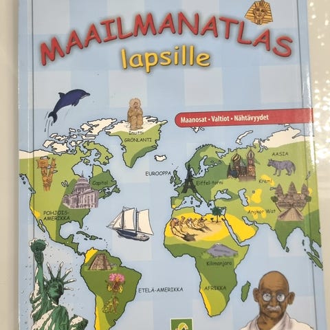 Uudenveroinen ja tosi siisti lasten maailman atlas -kirja Maanosat, valtiot, liput, nähtyvyydet ym. upeina kuvina.