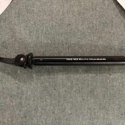 Etupyörän läpiakseli 15x110mm. Sopii ainakin Rockshox joustokeuloille. 158mm pituinen (aluslevystä kierteen päähän), josta kierreosuus 10mm. Kierre ja nousu M15XP1.5. Paino 35g (valmistajan ilmoittama).