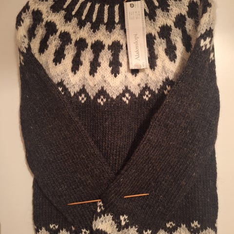 Käsintehty Alafosslopi villapaita, 100% villaa. Käyttämätön, käsittelyt tehty asianmukaisesti neulonnan jälkeen.