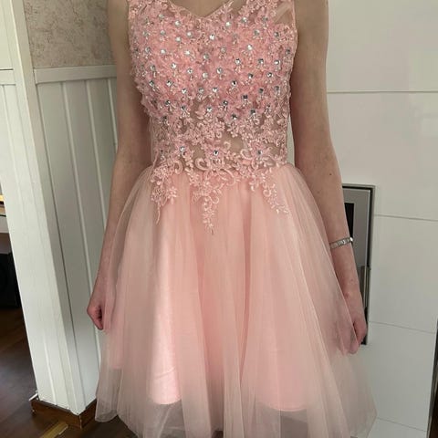 Rippimekko, vaaleanpunainen, koko 38. Selkäpuolella nyörit joilla saa kokoa vielä säädettyä. Viimeisessä kuvassa väri näkyy paremmin. Myynnissä myös muualla.