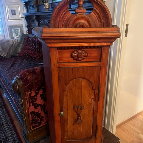 Kaappi on maalattu käsin ja viimeistelty suojaavalla lakkapinnalla.