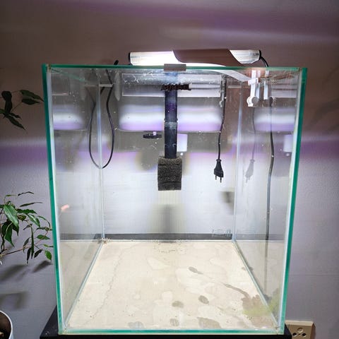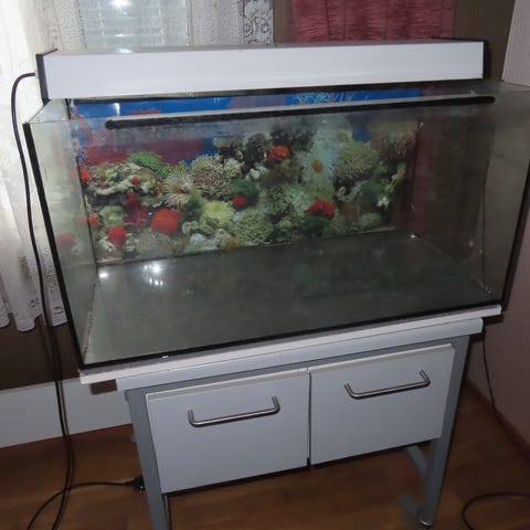 Aquael akvaario, n 55 litraa. Mukaan suodatin, lämmitin ja tarvittaessa hiekkaa. Juuri tyhjennetty, ollut poikasaltaana.