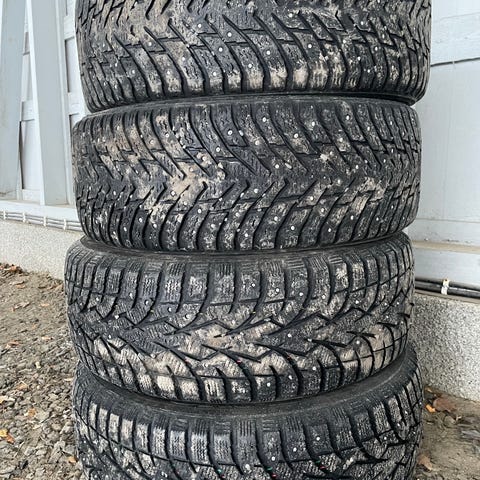 Talvirenkaat Nokian Hakkapeliitta 4 3 kpl. Kaikkia renkaita ei ole kuvattu.Rengaskoko 215/65/15 Renkaat valmistettu 2006 ja 2007. Kaikissa 3 renkaassa pintaa 4 mm Vain nouto.