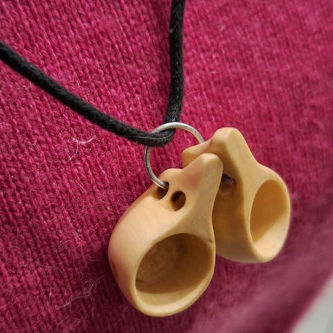Puusta käsin valmistettu pikkukuksa vaikka rintakoruksi.