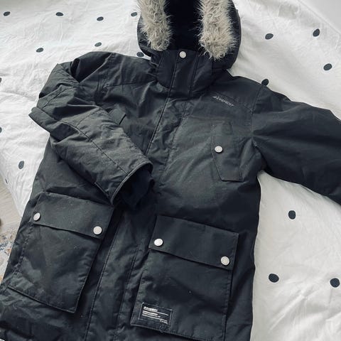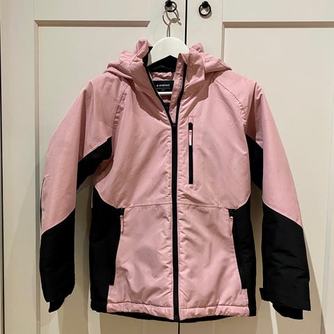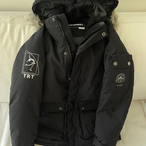 Punainen Everest talvitakki jossa on reikä mutta saa palkkaamalla korjattua