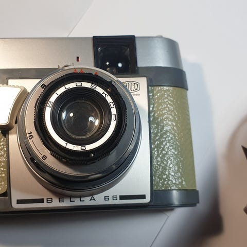 Myydään vanha Bilora Bella 66. Kamera tietääkseni toimii, koska kaveri laittoi jonkun filmin siihen ja ainakin suljin räpsii jotain. Kuvia ei ole teetetty, joten laadusta en osaa sanoa. Suojakotelossa pari repeämään, jotka näkyvät viimeisessä kuvassa. Lähetys mahdollinen