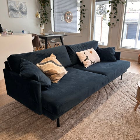 Ostetaan sohva, mieluiten vihreä. Samettikangas plussaa, saa tarjota muunkin värisiä. Mielellään mukava, iso ja syvä. Hinta max 350e.