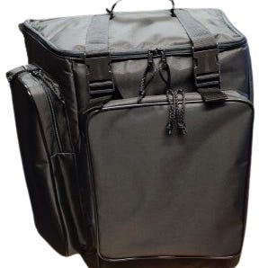 Hohner musta kantolaukku, jossa säädettävät olkahihnat ja vetoketjullinen etutasku nuoteille sekä sen sisällä vielä pieni läppätasku. Tukeva kantokahva. Laukku on valmistettu kestävästä materiaalista ja pehmustettu sisäpuoli suojaa haitaria hyvin. Todella hyvässä kunnossa edelleen.
