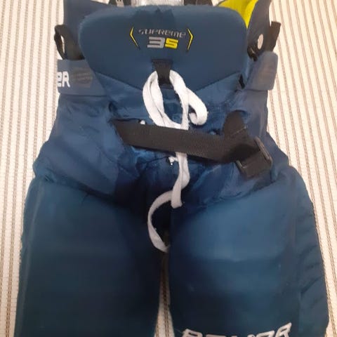 Siistit ja ehjät, hiukan pintakulumaa lahkeissa. Menee noin 130-140cm pelaajalle.