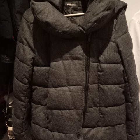 Harmaa/hopean värinen FB Sister takki. Koko M. Reilun kokoinen huppu. Alin neppari puuttuu.