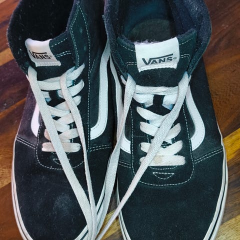 Vans Tennarit koko 45 musta. Kengät ovat korkeavartiset ja mustan väriset, sopivat monipuoliseen käyttöön.