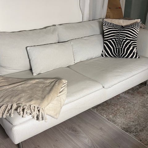 Loistavassa kunnosssa oleva kolmen istuttava Söderhamn-sohva. Verhoilu muistuttaa ulkonäöltään hieman samettia. Tästä saisi mielettömän mukavan ja käytännöllisen sohvan.