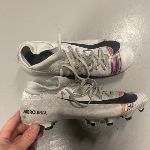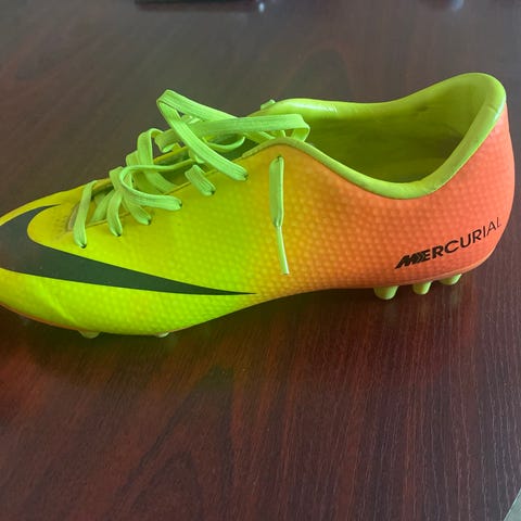 Nike Mercurial jalkapallokengät mustassa värissä. Kengät on suunniteltu jalkapallon pelaamiseen ja niissä on kiinnitysnauhat. Pohjassa on nastat, jotka soveltuvat nurmikentille. ovh 80 ja löytyy myös paljon muuta jalkapallo vaatteita/tavaroita. Kysy tarvittavaa