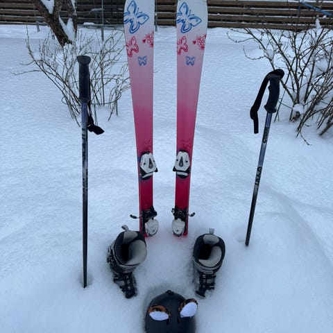 Laskettelusetti sukset 184cm+sauvat 130cm+ monot(n.42)