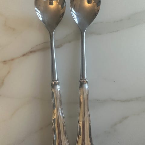 Käyttämättömät salaattiottimet. Varsi hopeaa, muuten ruostumatonta terästä.