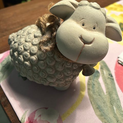 Suloinen keraaminen lammashahmo, tehty käsin.