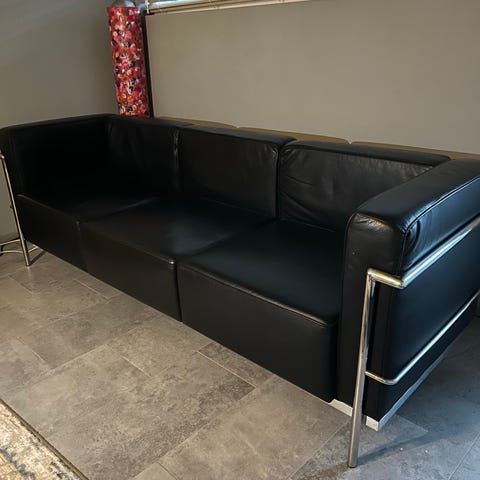 Myydään tarpeettomana vähän käytetty ja hyvinpidetty musta Furninovan nahkasohva. Täysin ehjä ja hyväkuntoinen. Leveys 226 cm, syvyys 91 cm, istuin syvyys 55 cm, selkänojan korkeus 72 cm, istuin korkeus 38 cm, käsinojien korkeus 59 cm. Istuintyynyjen ja selkätyynyjen nahkapäällysteet vetoketjulla avattavissa. Allergisille tiedoksi, koira talous. Vain nouto.